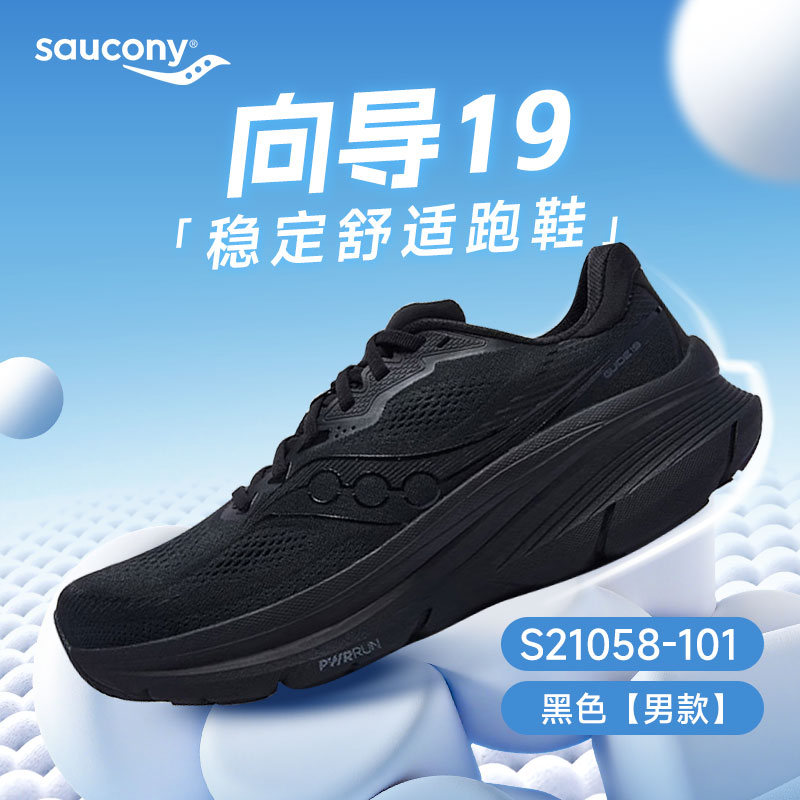 Saucony索康尼 向导19慢跑鞋 GUIDE 19女款缓震支撑跑步鞋 新款运动训练跑鞋 S11058-101 黑色