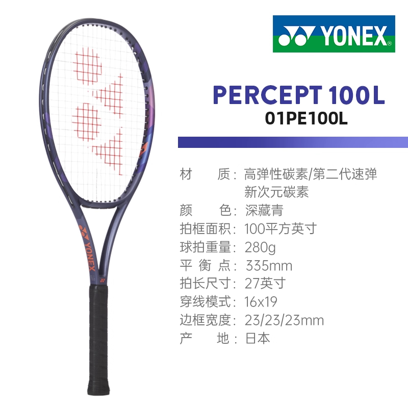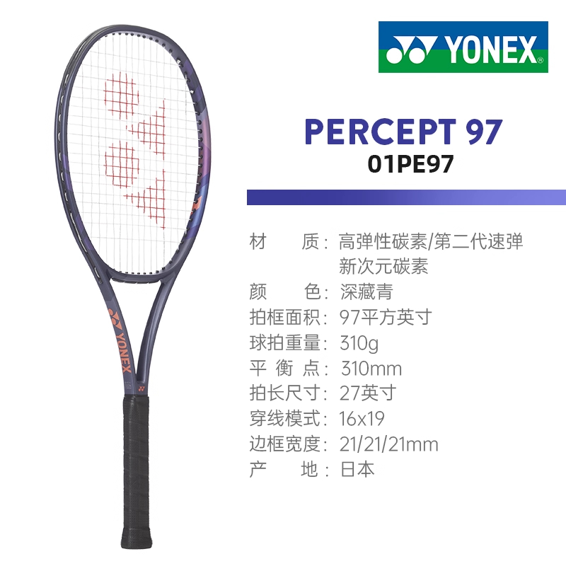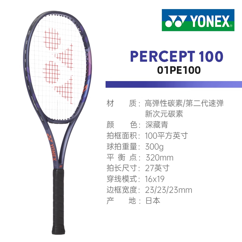 YONEX尤尼克斯网球拍 25新款PERCEPT 01PE100YX瓦林卡全碳素专业拍 100/300 深藏青色