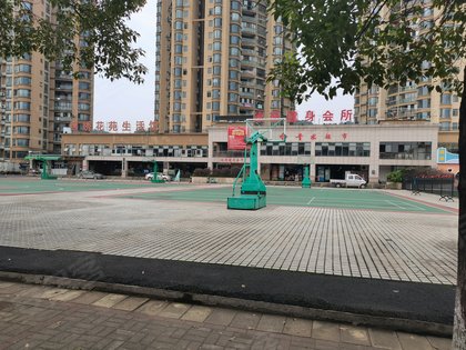 小区北面高层有篮球鞋,南门进门中心位置有人工湖和庭院,还有一些健身器材