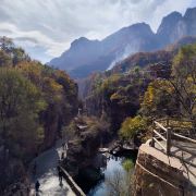 4分 满意2020年10月底去的,可惜雾有点大了。现在的景区交通车到绝壁长廊前就停车下客,游客可以在绝壁长廊里慢悠悠地观景,出来后,可以往左经过天池到观景台欣赏绝壁长廊的全貌,也可以一直沿着公路往前走,游郭亮石头村,只是现在商业气氛浓,许多石头屋子都要拆建,没有了以前的韵味,而且有几个以前曾拍过电影的旧房子,进去参观要每人一元,不值得。在路口,有私家车在招揽游人去炮楼游玩。因为时间匆忙,只是到了大小观景台以及郭亮村,加上用饭时间,耗时3个小时内。然后又沿着绝壁长廊返回乘车时,此处木有直达景区大门的交通车,需要到南坪景点再换乘到大门的交通车。景区大门口发往辉县的班车,乘车点难找,最后一班是下午4点多发车。过点后只能找私家车了,不过这里差不多每家饭馆商店的人都可以帮忙找到车子的。