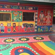 5分 超棒彩虹眷村在台中岭东附近,是一个小小的老眷村,画家是一个老爷爷,里面所有的作品都都是他一点一滴的心血,,色彩非常的缤纷,无论各种年龄、不分老少都非常适合来这走走拍照哦,就连拍婚纱也很棒,让人非常有童心的fu。