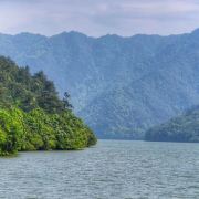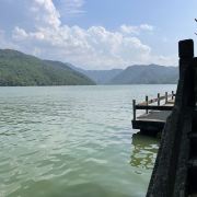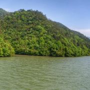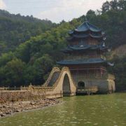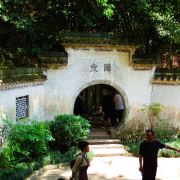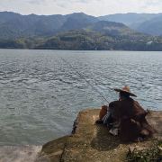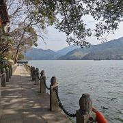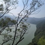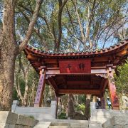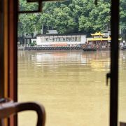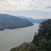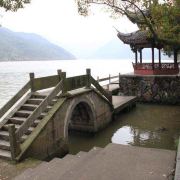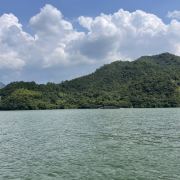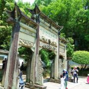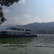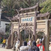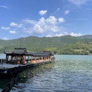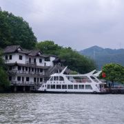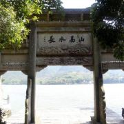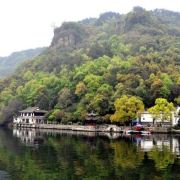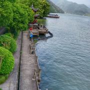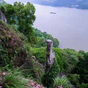 游船第一程到该钓台后上岸,停留约1小时。山脚下有一些古迹,刻有“严子陵钓台”的古牌坊,也在游客照片中出镜率很高的。此外还有严先生祠、天下十九泉等景点可以参观。上山的路分为东、西两条,其中东步道有大量石碑组成的碑廊,看不懂可以在下船的地方请讲解员。顺着林间小路上山,四周是茂密的竹林,山很小,15分钟即可登顶。山顶的钓台分东台、西台,东台相传为严子陵隐居垂钓之地,西台为谢翱器哭祭文天祥处。这两处均是不错的观景台,可以俯瞰富春江龙门峡的风景。如果不想爬山,在山脚下江边的茶楼坐着喝喝茶,看看风景,也挺惬意的,注意游船时间就好。
