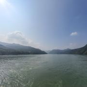 进入景区后,首先在游客中心购票,旁边就是乘船的码头。散客等船的时间比较长,一般40分钟一班,除非正好碰上团队,不愿意等也可以坐快艇。在江上乘船的感觉很不错,有点走进《富春山居图》的感觉。