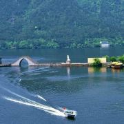 乘船返程时会在出发码头对面的钓鱼岛停靠,小岛上的景观基本是新近人工造的,有一个高高的拱桥,旁边有一个塔楼。这塔楼是个祈福去处,会有人说免费赠送红丝带给大家,然后引导你去祈福、点灯之类的,最后说可以“随缘”给香火钱。
