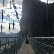 5分 超棒挺好的一个景点,主要就是在山边200米高的悬空栈道上走,对于有点恐高的我不敢离栏杆太近,还有一个铁索桥也非常刺激,心中不由赞叹当初修这条栈道的工匠是多么伟大,都是从石头里面凿出来的。景色不错,适合拍照。