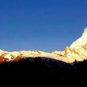 灿烂的斜阳,纷纷扬扬地射在马特宏峰高耸险峻的山体上,金光晖映,摄人心魄…那,是金山。