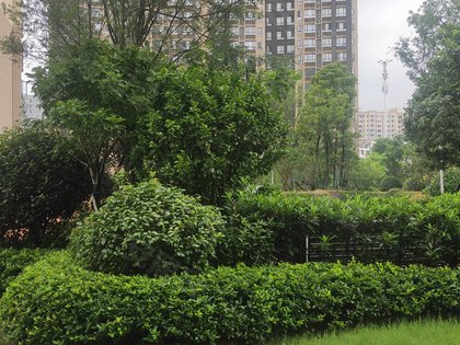 小区中心绿化率高,配备篮球场羽毛球场。与环形跑道。很多小朋友在此玩耍
