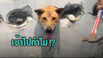 แต่ละมื้อ แต่ละเดย์.. หมามุดรูกำแพงแล้วออกไม่ได้ เดือดร้อนต้องทุบช่วย