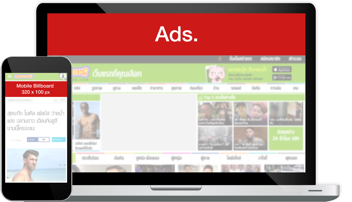 โฆษณาที่มีความโดดเด่นในเรื่อง ขนาดของแบนเนอร์ ตำแหน่งที่แสดงผล รวมทั้งสามารถเลือกรูปแบบโฆษณาได้ทั้ง วิดีโอ, ภาพเคลื่อนไหวแบบอินเทอร์แอ็คทีฟ
